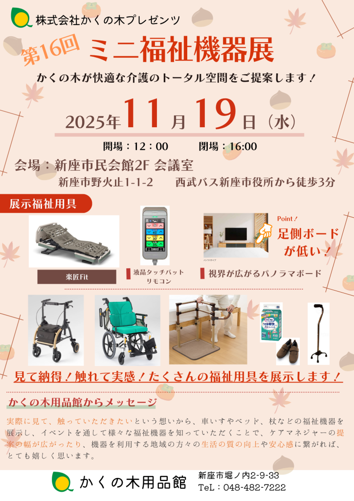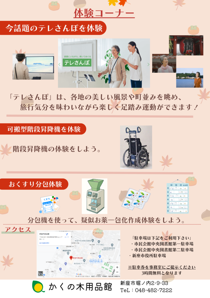 最新の車いすやベッド、杖などを展示し、実際に「見て・触って・体験」することができます👐
